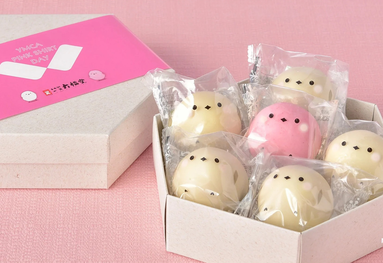 とかち帯広ブランチは地域の団体と共にオリジナル絵本を制作。これに共感した札幌の和菓子店「一久大福堂」さんがピンクシャツデーのお饅頭「ぽぬぐるシマエナガ」➡を販売するなど、運動の輪が広がっています