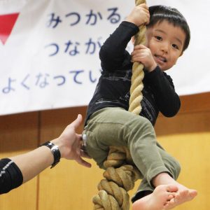 キャンプに加えて屋内でもおもいっきり体を動かせるウォールクライミング、トランポリン、プールなど子ども、ご家族にあった体力づくりを提案しています。地震被災地厚真地域の子どもたちへのキャンプも続けています。