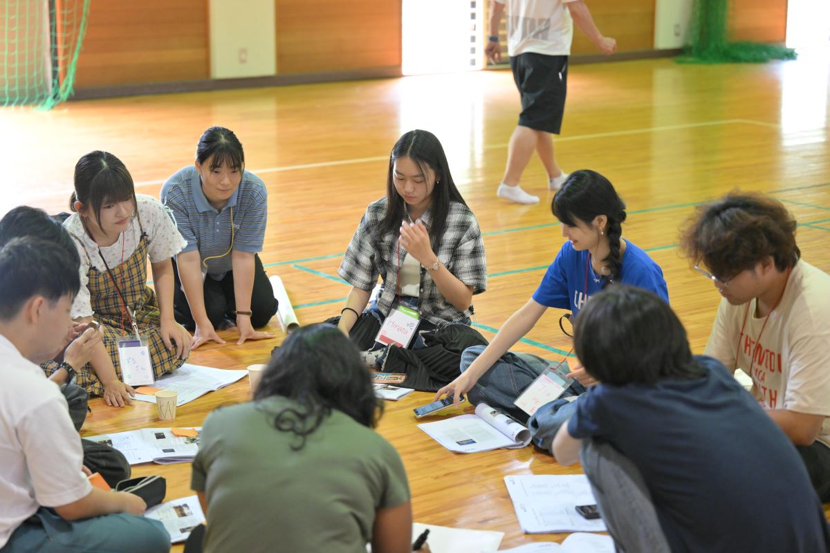リーダーたちは、テーマの最後の「WA」に、「輪、話、笑、環、和、私」と、びっくりの「わっ!」の7つの願いをこめ、資料館や慰霊碑などを見学した後の2日間で、いくつかのワークショップを企画しました。