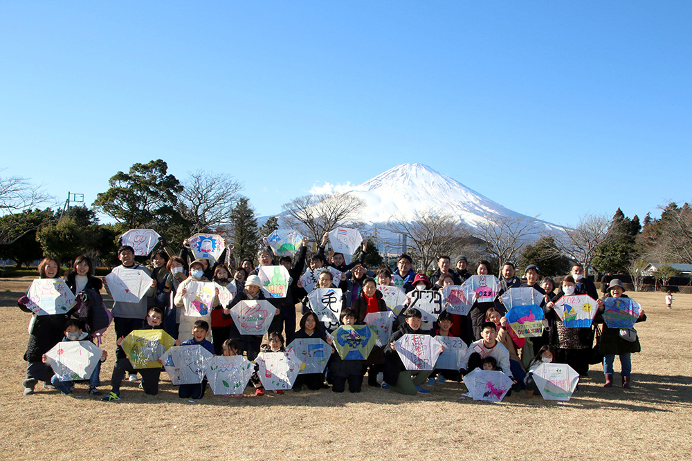 今回は、ウクライナからの避難者とそのご家族も参加され、凧作り、凧あげ、ネイチャープログラムなど、日本のお正月を共に満喫。御殿場で避難生活を送っているミラさんとマリナさんご家族は、「ぜひウクライナの紹介をしたい」と、日本の参加者にウクライナの文化紹介をしてくれたほか、毛糸を用いたクラフトも教えてくれました。